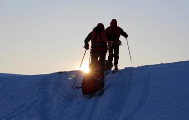 Luotettava joka paikkaan sopivä norjalainen tunturiahkio. Kiinteä pressu, jäykät H-aisat, vetovyö.